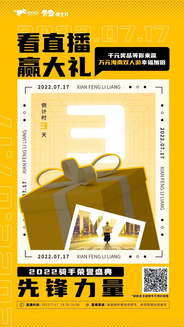 節(jié)日前夕,美團配送也陸續(xù)推出豐富的專題活動,包括騎手家庭日、騎士節(jié)專屬禮品發(fā)放、站點聯(lián)歡活動、騎手免費理發(fā)專場等,讓廣大騎手過上富有職業(yè)認同感和集體歸屬感的騎士節(jié)。7月17日當天,“2022騎手榮譽盛典·先鋒力量”頒獎典禮也將在央視網(wǎng)和美團騎手視頻號同步直播。