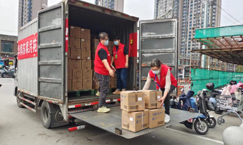 在蘇果月苑社區(qū)店門(mén)口,員工們正在緊張的往貨車(chē)上裝箱。“這批物資是給一個(gè)封控單位送的,主要是牙刷、牙膏、毛巾,襪子等生活用品?!遍T(mén)店負(fù)責(zé)人崔云正在統(tǒng)籌指揮門(mén)店員工有序工作,“門(mén)店也有一半員工被封控在家,雖然人手短缺,但大家工作積極性很高,這兩天都是全天在線?!?/p>