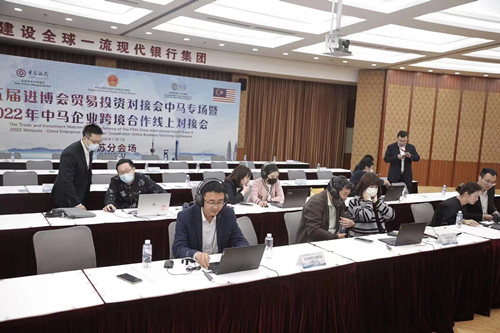 為進(jìn)一步豐富第五屆進(jìn)博會(huì)對(duì)接活動(dòng)主題,促進(jìn)中國(guó)和馬來(lái)西亞兩國(guó)間的經(jīng)貿(mào)投資往來(lái),中國(guó)銀行與中國(guó)駐馬來(lái)西亞大使館、馬來(lái)西亞中華總商會(huì)共同舉辦了“第五屆進(jìn)博會(huì)貿(mào)易投資對(duì)接會(huì)中馬專場(chǎng)暨2022年中馬企業(yè)跨境撮合線上對(duì)接會(huì)”(以下簡(jiǎn)稱“中馬對(duì)接會(huì)”),邀請(qǐng)客戶依托“惠如愿·中銀e企贏”平臺(tái)開(kāi)展線上視頻洽談。江蘇中行積極落實(shí)總行工作部署,設(shè)立了南京、淮安兩處分會(huì)場(chǎng),邀約了近30家中小企業(yè)客戶參加“中馬對(duì)接會(huì)”。