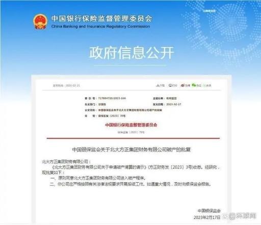 中國(guó)銀保監(jiān)會(huì)關(guān)于北大方正集團(tuán)財(cái)務(wù)有限公司破產(chǎn)的批復(fù)