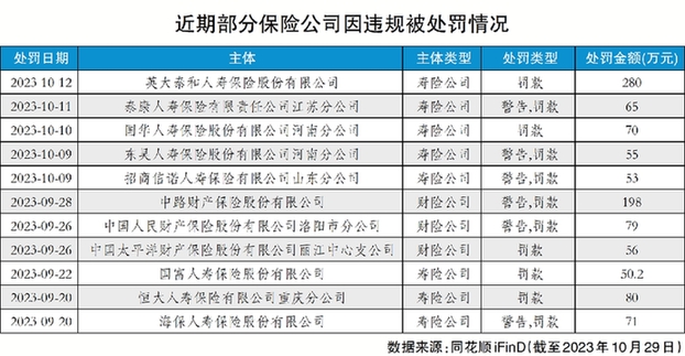 記者注意到,這是保險(xiǎn)業(yè)繼中路財(cái)產(chǎn)保險(xiǎn)股份有限公司(簡(jiǎn)稱(chēng)“中路財(cái)險(xiǎn)”)收到198萬(wàn)元“罰單”后又一張“百萬(wàn)級(jí)”罰單。同花順數(shù)據(jù)統(tǒng)計(jì)顯示,今年下半年以來(lái),各類(lèi)主管機(jī)關(guān)對(duì)保險(xiǎn)公司的違規(guī)行為作出約500次處罰,合計(jì)處罰金額超億元。業(yè)內(nèi)專(zhuān)家表示,監(jiān)管部門(mén)從重處罰一些存在違規(guī)違法問(wèn)題的經(jīng)營(yíng)機(jī)構(gòu),屬于常規(guī)動(dòng)作,有助于進(jìn)一步規(guī)范保險(xiǎn)市場(chǎng)秩序、防范金融風(fēng)險(xiǎn)、保護(hù)消費(fèi)者權(quán)益等。