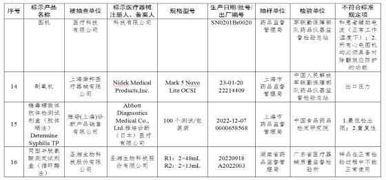 據(jù)國家藥監(jiān)局網(wǎng)站消息,為加強(qiáng)醫(yī)療器械監(jiān)督管理,保障醫(yī)療器械產(chǎn)品質(zhì)量安全有效,國家藥監(jiān)局組織對呼吸道用吸引導(dǎo)管(吸痰管)、生物反饋治療設(shè)備等11個(gè)品種進(jìn)行產(chǎn)品質(zhì)量監(jiān)督抽檢,發(fā)現(xiàn)16批(臺)產(chǎn)品不符合標(biāo)準(zhǔn)規(guī)定。