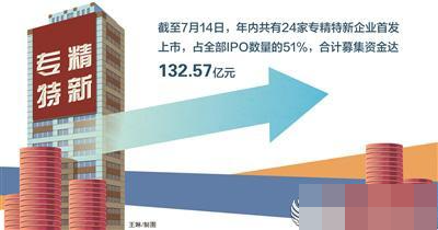 今年以來,資本市場持續(xù)健全服務科技創(chuàng)新的相關機制,尤其是在支持專精特新企業(yè)融資方面成效顯著。據(jù)Wind資訊數(shù)據(jù)統(tǒng)計,截至7月14日,年內(nèi)共有24家專精特新企業(yè)首發(fā)上市,占全部IPO數(shù)量的51%,合計募集資金達132.57億元。