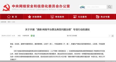 11月24日,中央網(wǎng)絡(luò)安全和信息化委員會辦公室秘書局等四部門聯(lián)合發(fā)布關(guān)于開展“清朗·網(wǎng)絡(luò)平臺算法典型問題治理”專項行動的通知,決定自即日起至2025年2月14日,開展對信息繭房、熱搜榜單、新就業(yè)形態(tài)勞動者權(quán)益、大數(shù)據(jù)“殺熟”等六個方面的算法治理。有關(guān)分析指出,隨著專項行動開展落實,將進一步維護用戶合法權(quán)益,提升用戶體驗和滿意度;促進網(wǎng)絡(luò)空間的健康、有序發(fā)展;以及推動技術(shù)創(chuàng)新與監(jiān)管并重,確保算法技術(shù)的健康發(fā)展。此外,接續(xù)性措施有望跟上,例如,第三方機構(gòu)和成熟統(tǒng)一的評估標(biāo)準(zhǔn)可能在這次指導(dǎo)文件發(fā)布后逐步完善。這需要時間,也需要政府側(cè)配備相關(guān)人才等資源。