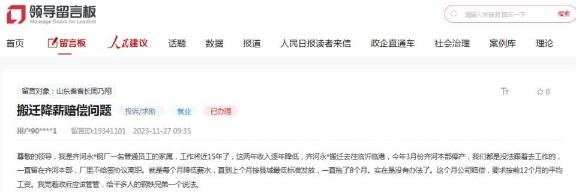 除了被撤銷高新技術(shù)企業(yè)資格之外,2023年11月27日,齊河永鋒鋼廠一名員工家屬在人民網(wǎng)“領(lǐng)導(dǎo)留言板”留言稱,永鋒鋼廠搬遷去臨沂臨港,今年3月份齊河本部停產(chǎn),“我們都是沒法跟著去工作的,一直留在齊河本部,廠里不給簽協(xié)議離職,就是每個(gè)月降低薪水,直到上個(gè)月按縣城最低標(biāo)準(zhǔn)發(fā)放,一直拖了8個(gè)月”,賠償卻要求按前12個(gè)月平均工資計(jì)算。