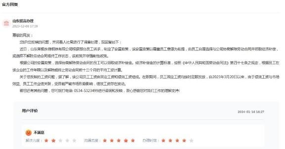 對(duì)此,名為“山東留言辦理”的ID號(hào)12月8日在該條留言下回復(fù)稱,齊河縣人社局進(jìn)行了調(diào)查處理:近日,山東萊鋼永鋒鋼鐵有限公司根據(jù)部分員工訴求,制定了安置政策,該安置政策以尊重員工意愿為前提,由員工自愿選擇與公司協(xié)商解除勞動(dòng)合同并領(lǐng)取經(jīng)濟(jì)補(bǔ)償,或選擇不解除勞動(dòng)合同維持工作狀態(tài),該政策并非強(qiáng)制性政策。