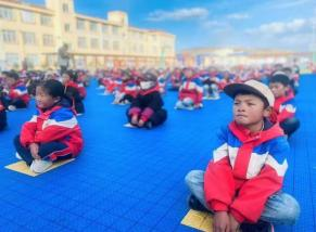 紅原縣小學操場舊貌換新顏。紅原縣瓦切鎮(zhèn)小學建于1959 年,多年使用后操場破損嚴重,極大危害學生活動安全。2024 年, 中國人保投入專項資金將原有損壞嚴重的青石板操場提升改造為懸浮地板,為學生提供健康安全的運動空間。
