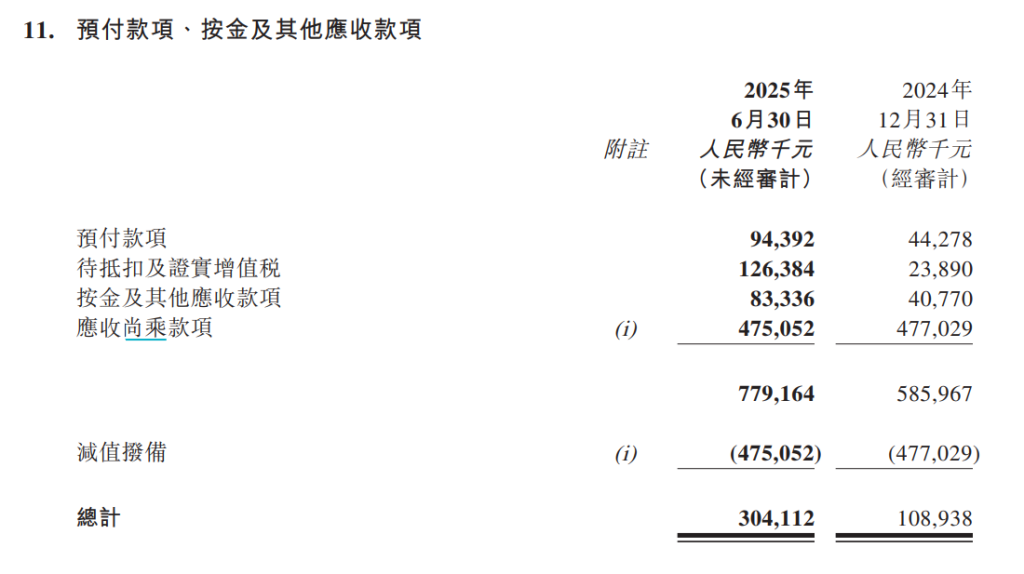 同樣是2025年半年報披露的數據顯示,復宏漢霖應收尚乘款項為4.75億元, 減值撥備為4.75億元。