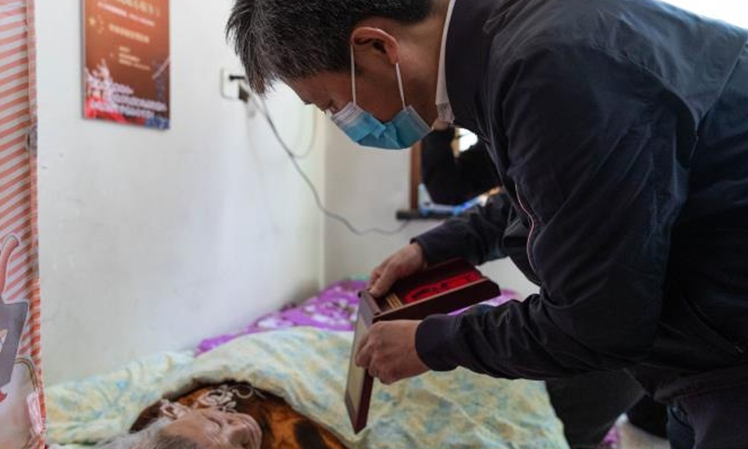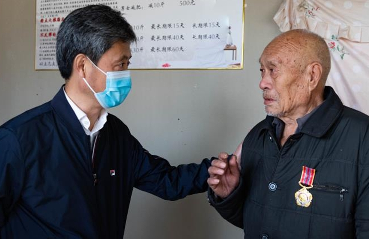 84歲的徐敏老人17歲應征入伍,參加過抗美援朝戰(zhàn)役。他雖然年事已高,但仍然精神抖擻、聲音洪亮。高立春一行來到徐敏家中,與他親切交談,并送上米、面、油、牛奶等慰問品。高立春對老人投身抗美援朝、經(jīng)歷浴血奮戰(zhàn)的大無畏精神表示敬意,感謝他們?yōu)樾轮袊鞒龅呢暙I,并親自為他佩戴上“中國人民志愿軍抗美援朝出國作戰(zhàn)70周年”紀念章。同時,高立春還要求相關部門和工作人員要時刻關心、照顧好老人,及時主動地幫助老人解決生活困難,并叮囑老人有任何困難第一時間找退役軍人服務中心這個“娘家人”。