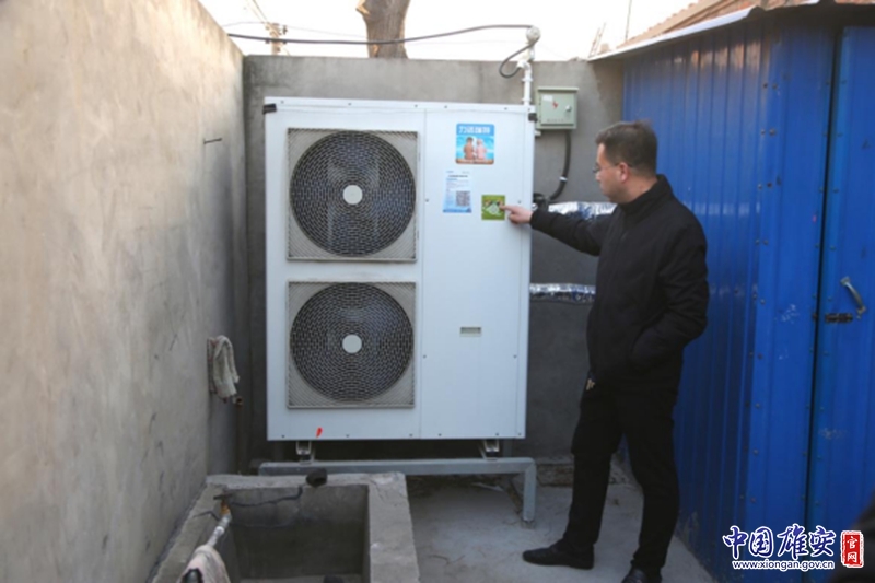 用戶在為記者介紹“電代煤”改造工程中使用的空氣源熱泵。中國雄安官網發(fā)