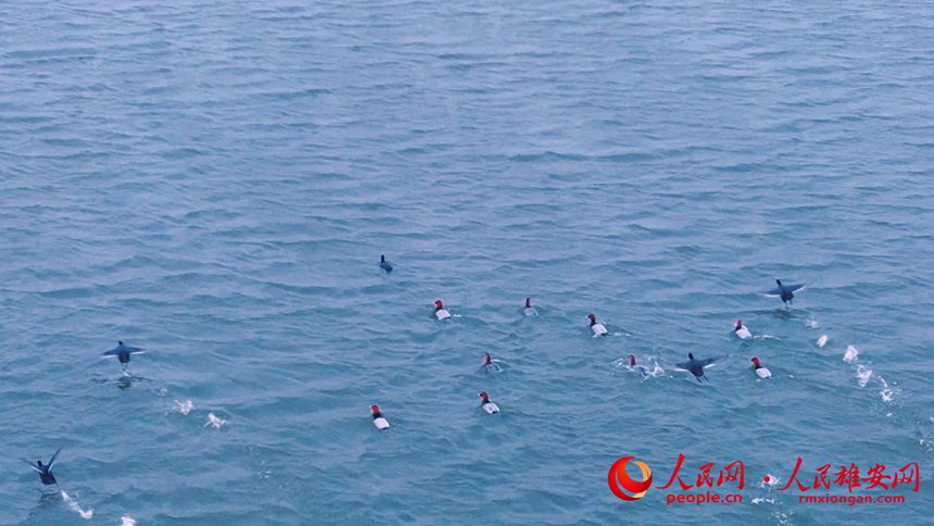 人民網(wǎng)雄安3月24日電 “春江水暖鴨先知。”一到春天,大批候鳥陸續(xù)抵達(dá)白洋淀,開始筑巢產(chǎn)卵、孵化育雛,11月份再遷徙到南方避寒越冬。日前,在白洋淀水域拍攝到遷徙歸來(lái)的國(guó)家一級(jí)保護(hù)動(dòng)物青頭潛鴨,鳳頭鸊鷉和大種群的國(guó)家“三有”保護(hù)動(dòng)物紅頭潛鴨、白骨頂雞,它們?cè)诘碇袝秤巍㈡覒?、追逐、覓食,萌態(tài)十足。