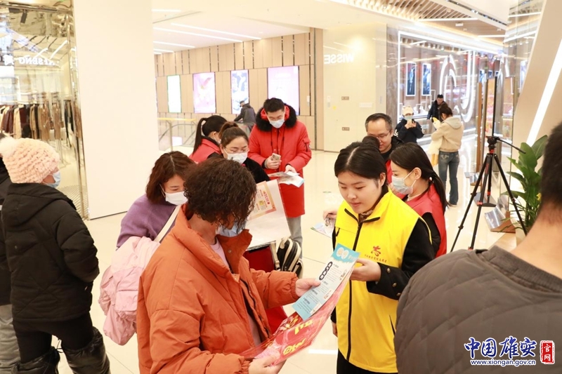 志愿者為過往群眾講解發(fā)放安全宣教資料。中國雄安官網(wǎng)發(fā)