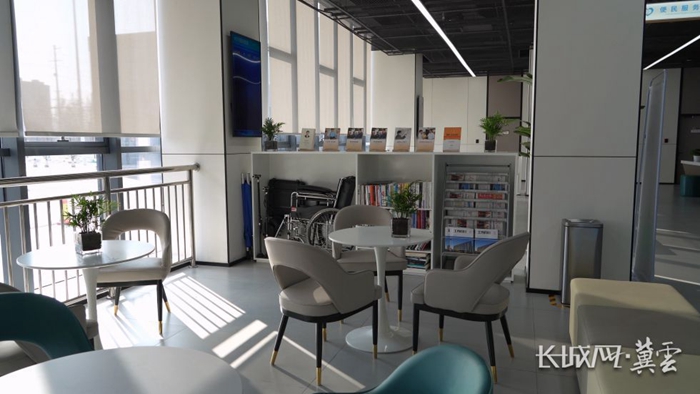 雄安新區(qū)政務(wù)服務(wù)中心新址一樓大廳閱讀書(shū)吧。長(zhǎng)城網(wǎng)·冀云客戶端記者 李澤凱 攝