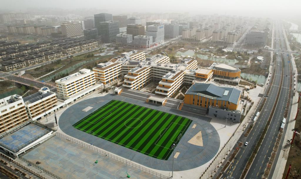 雄安新區(qū)容東片區(qū)內(nèi)的學(xué)校(3月28日攝,無人機照片)。新華社記者楊世堯 攝