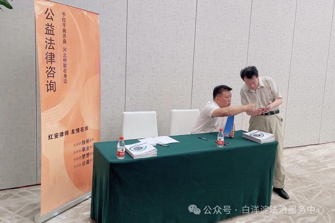 8月30日,“牽手京津冀 僑智匯雄安”百名僑界博士雄安行活動(dòng)在雄安國(guó)際酒店舉行。白洋淀法治服務(wù)中心理事白長(zhǎng)青、秘書長(zhǎng)花鑫現(xiàn)場(chǎng)提供公益法律咨詢服務(wù)。