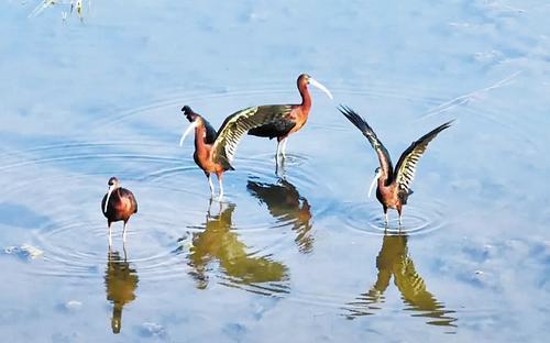 彩鹮是有著“東方寶石”之稱的朱鹮的近親,因為它的羽毛在太陽下會閃爍多彩金屬光澤,所以叫彩鹮?!吨袊鵀l危動物紅皮書》曾一度宣布彩鹮在我國絕跡。彩鹮在河北省雖有分布,但一次拍攝到6只“扎堆”出現(xiàn),卻也十分罕見。