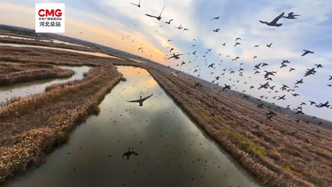 初冬時節(jié),在雄安新區(qū)白洋淀的孝義河口濕地,上萬只的雁鴨類候鳥在此棲息覓食,鳳頭鸊鷉不斷潛水捉魚,積攢往南遷徙的體力,旁邊的綠頭鴨則在水面嬉戲歇腳,傍晚時分,隨著陣陣鳴叫聲,萬鳥齊飛,天空中鳥浪翻滾,不斷變換著形態(tài),為集體遷徙南下度過寒冬做著最后的準(zhǔn)備。