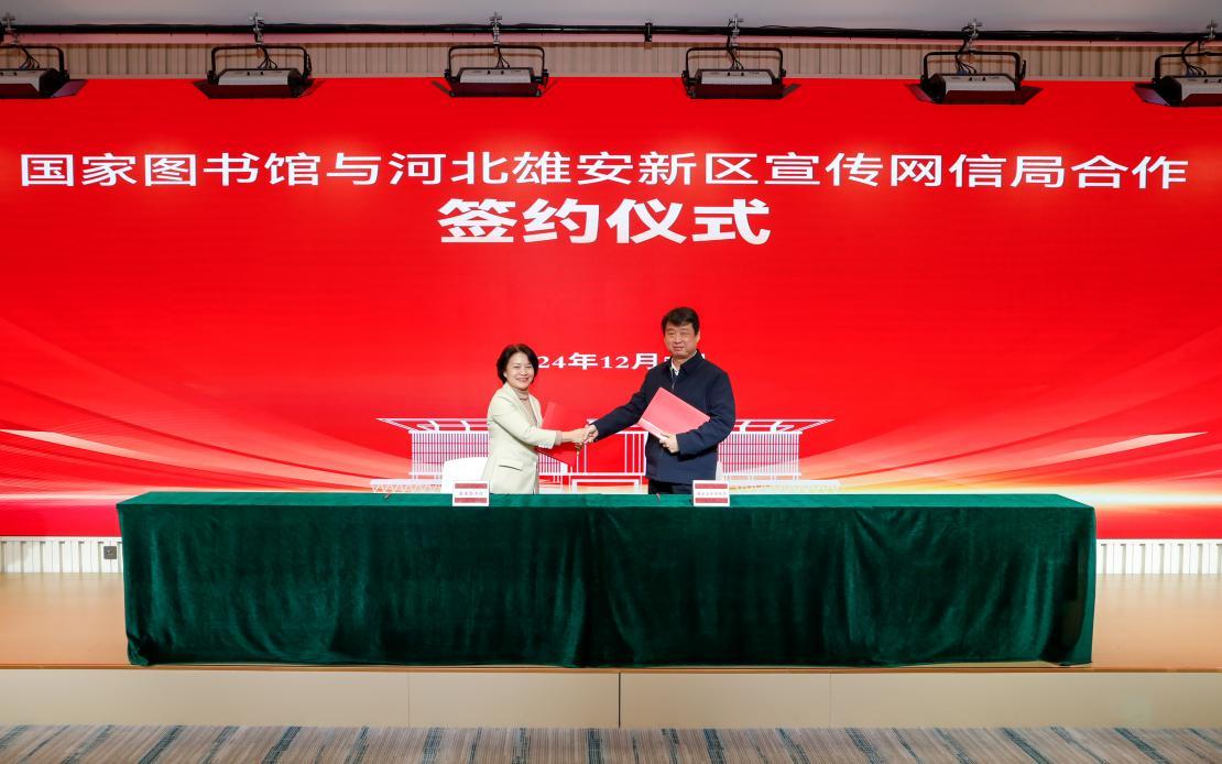 人民網(wǎng)雄安12月9日電 (記者宋燁文)日前,國家圖書館與雄安新區(qū)宣傳網(wǎng)信局在雄安科創(chuàng)中心舉行合作簽約儀式,雙方將共建雄安圖書館暨國家圖書館雄安分館。文化和旅游部公共服務司副司長閆曉東,國家圖書館黨委書記、副館長陳櫻,雄安新區(qū)黨工委委員、宣傳網(wǎng)信局局長邊建國出席簽約儀式。