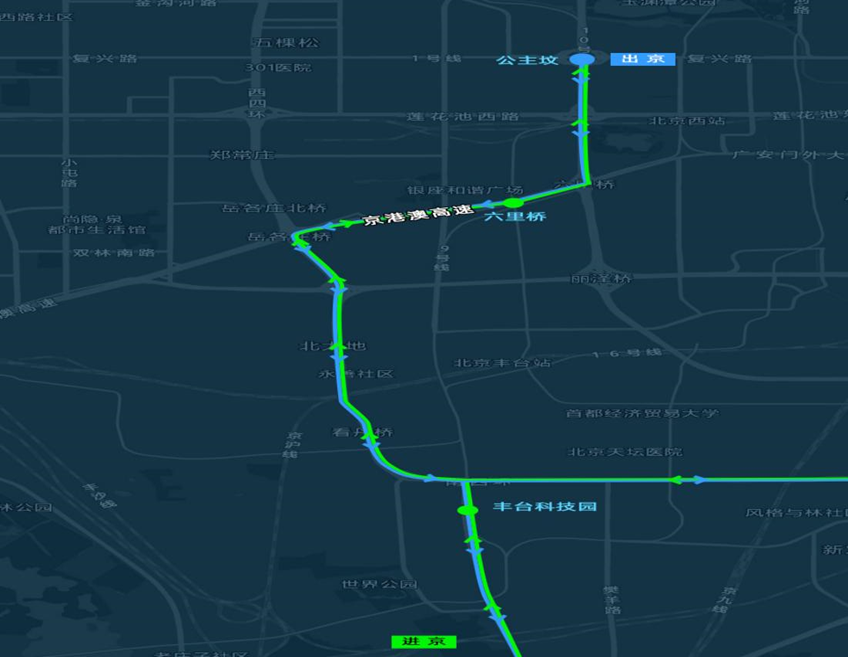 京雄通勤定制快巴線路北京端線路走向及上下客點(diǎn)位圖