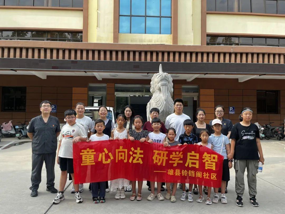 “原來(lái)法官開(kāi)庭的地方是這樣的呀!”“原來(lái)這個(gè)獨(dú)角獸雕像還叫獬豸,是公正的象征??!”2025年8月20日,雄縣法院迎來(lái)了一群特殊的客人——來(lái)自鈴鐺閣社區(qū)的10名小學(xué)生及其家長(zhǎng)。他們?cè)谛劭h法院“雄小荷”的邀請(qǐng)下,開(kāi)啟了一場(chǎng)別開(kāi)生面的“法院開(kāi)放日”活動(dòng),近距離感受法治的莊嚴(yán)與溫度。