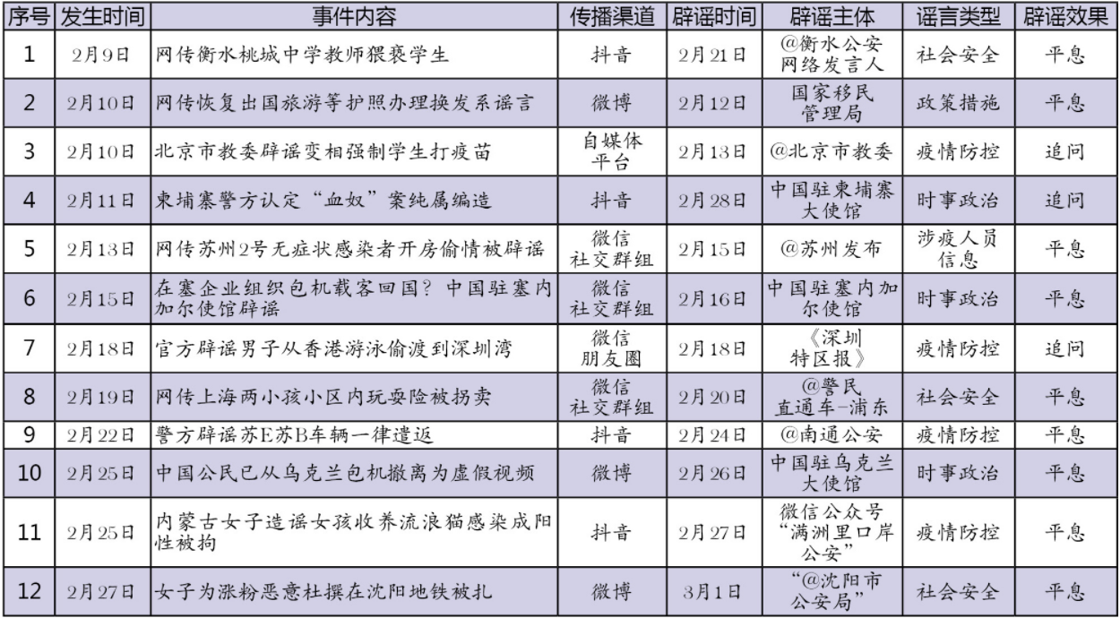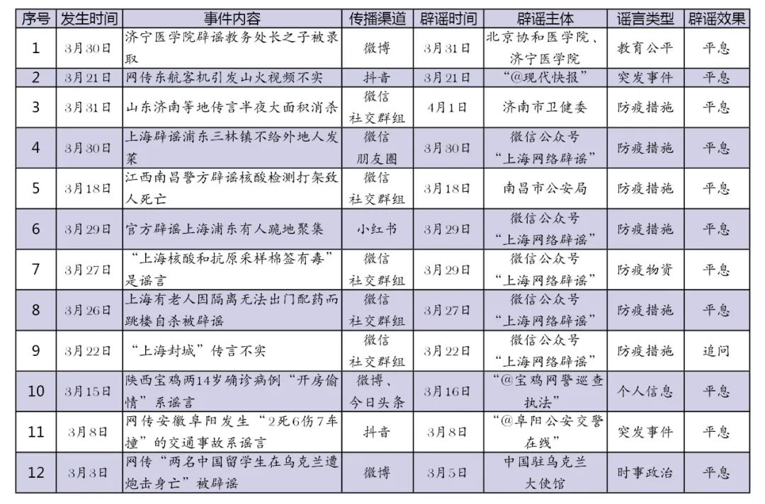 3月網(wǎng)絡涉法謠言辟謠榜單共梳理、匯總12起熱點事件,圍繞謠言持續(xù)時間、傳播渠道、產(chǎn)生地域、類型以及辟謠平臺等維度綜合分析,篩選兩起關注度較高、具有典型意義的案例研判,以期為網(wǎng)絡辟謠工作提供參考借鑒。