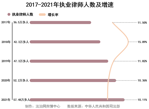 1.全國(guó)執(zhí)業(yè)律師超57.48萬(wàn)人,近五年平均增速超10%