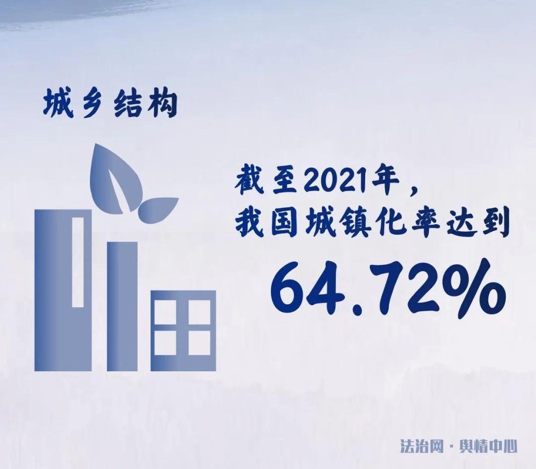 從城鄉(xiāng)結(jié)構(gòu)來(lái)看,1982年,我國(guó)是一個(gè)農(nóng)村人口占總?cè)丝?0%的典型農(nóng)業(yè)型國(guó)家。此后,通過(guò)不斷健全各項(xiàng)制度,多舉措改革創(chuàng)新,提高社會(huì)流動(dòng)性,使得中國(guó)社會(huì)走上了城市化發(fā)展道路,城市活力得到了進(jìn)一步釋放。我國(guó)實(shí)現(xiàn)了從落后的鄉(xiāng)村型社會(huì)向富足的城鄉(xiāng)融合型社會(huì)轉(zhuǎn)變。截至2021年,我國(guó)城鎮(zhèn)化率達(dá)到了64.72%。