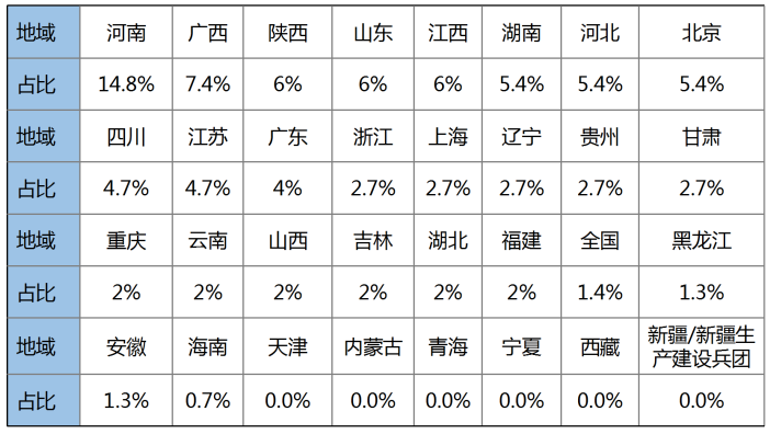2022年,在全國(guó)具有一定影響力的輿情事件波及26個(gè)省、自治區(qū)、直轄市,整體覆蓋范圍較廣。具體來(lái)看,河南省輿情數(shù)量居于首位,占比超一成,遠(yuǎn)超其他省市。其中,村鎮(zhèn)銀行取款難、儲(chǔ)戶被賦紅碼、安陽(yáng)火災(zāi)等事件均引發(fā)輿論廣泛關(guān)注。廣西壯族自治區(qū)輿情數(shù)量次之,占比7.4%,其中東航航空器飛行事故、全州超生孩子被“社會(huì)調(diào)劑”等事件關(guān)注度較高。陜西、山東、江西等省輿情數(shù)量占比均為6%,代表性事件包括江西高院維持勞榮枝案死刑判決、山東法院審理江秋蓮訴劉鑫案、西北工業(yè)大學(xué)網(wǎng)站遭網(wǎng)絡(luò)攻擊、湖南長(zhǎng)沙自建房倒塌事故等。整體來(lái)說(shuō),中東部地區(qū)輿情熱力值普遍較高,西北地區(qū)輿情壓力較2021年有所減緩。