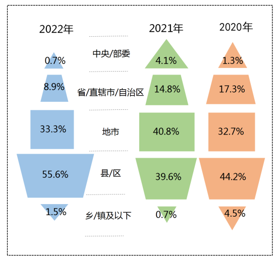 3. 層級(jí):縣區(qū)級(jí)輿情應(yīng)對(duì)占比過(guò)半 市級(jí)以上單位輿情壓力銳減