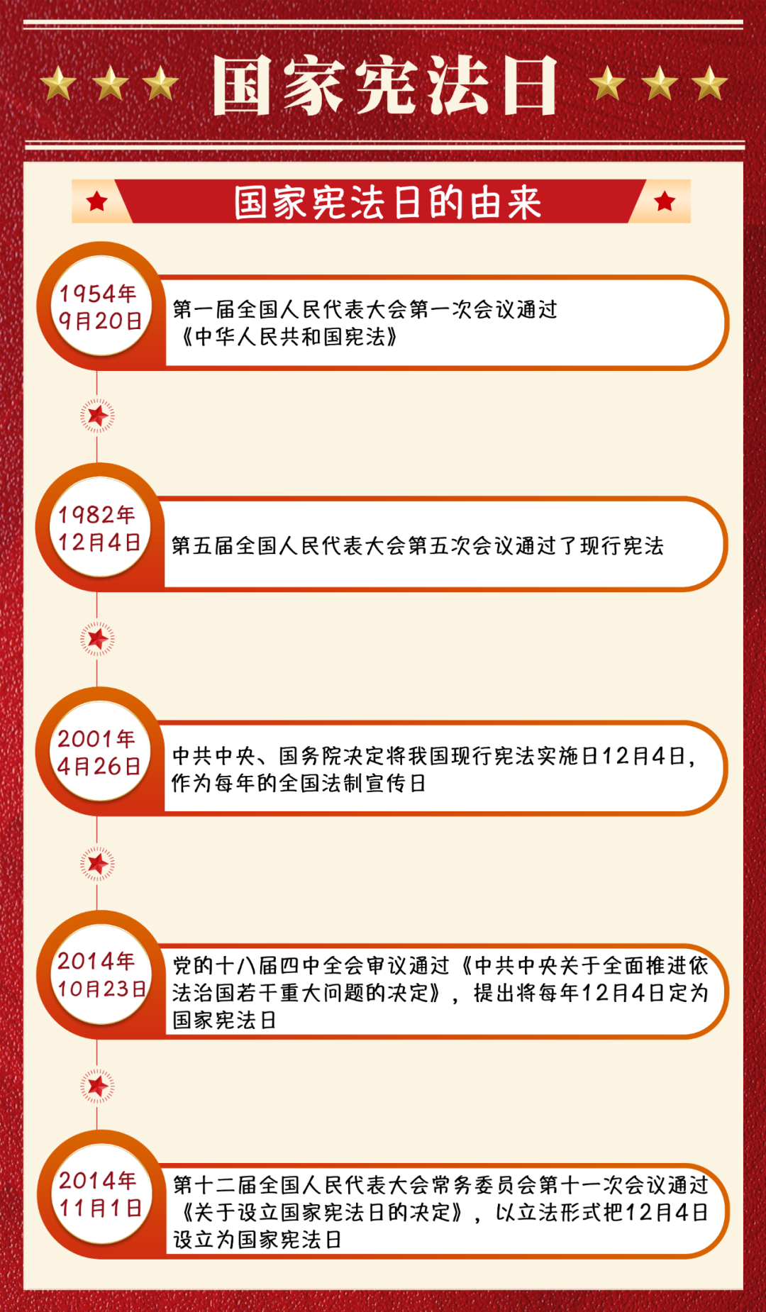 2014年11月1日,第十二屆全國(guó)人民代表大會(huì)常務(wù)委員會(huì)第十一次會(huì)議通過(guò)《關(guān)于設(shè)立國(guó)家憲法日的決定》,以立法形式把12月4日設(shè)立為國(guó)家憲法日。
