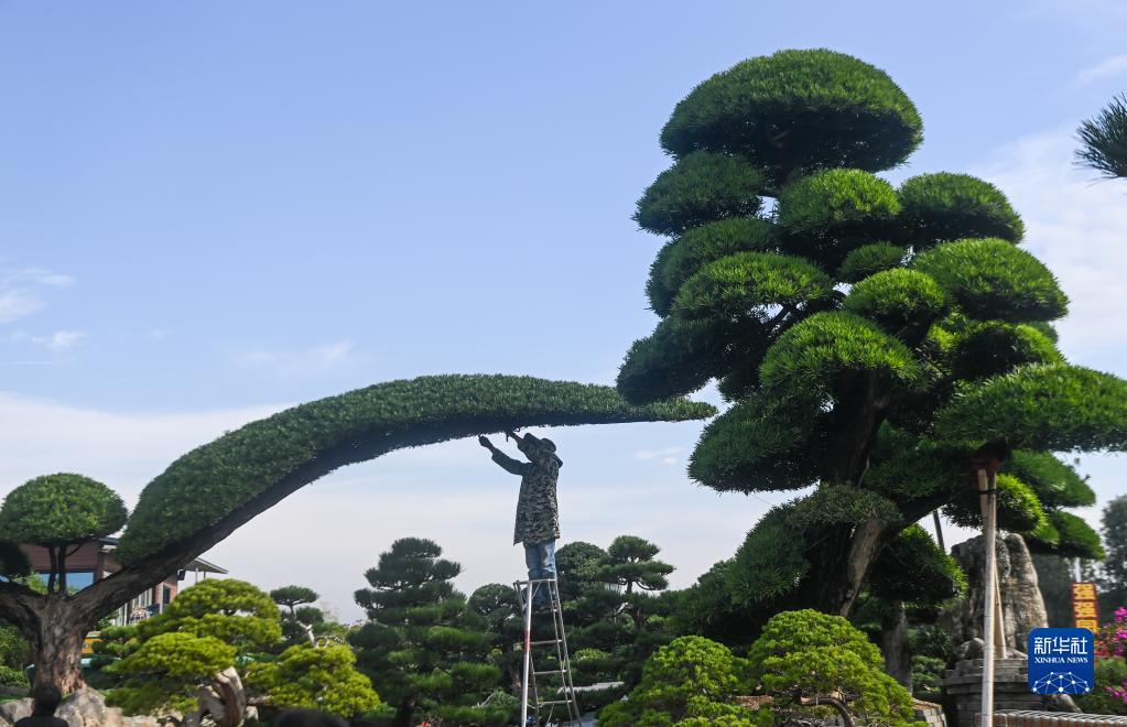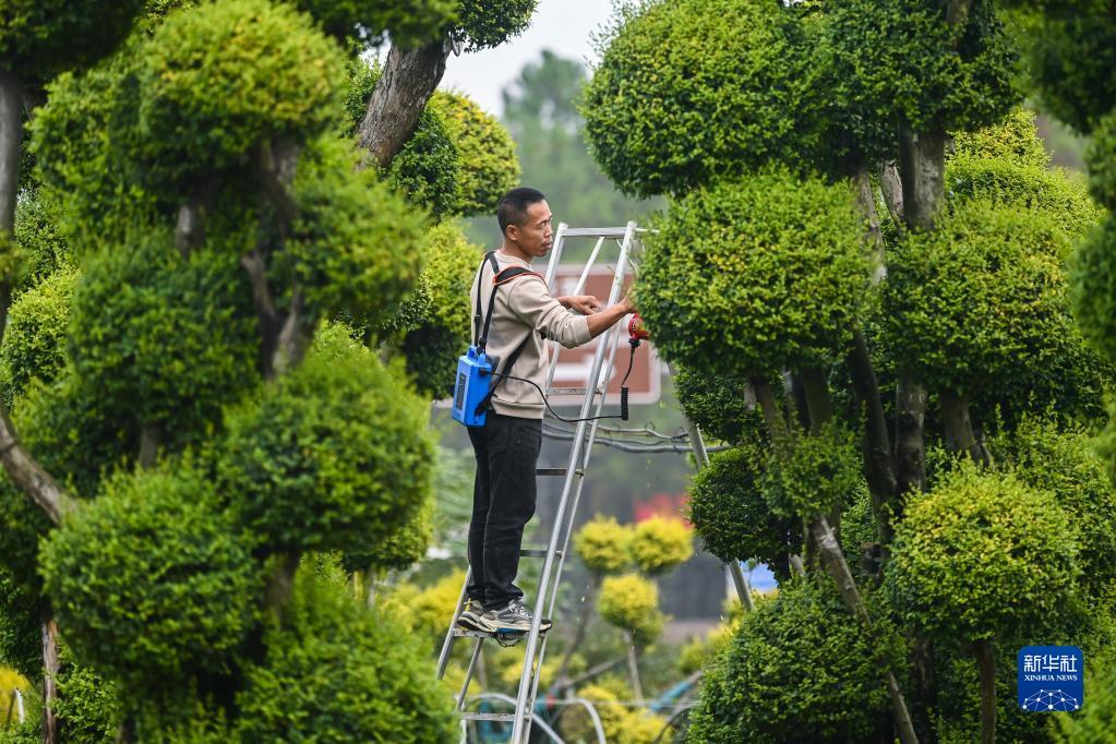 11月28日,在金華市金東區(qū)澧浦花木城的天越園藝苗圃內(nèi),種植戶在修剪樹(shù)木。