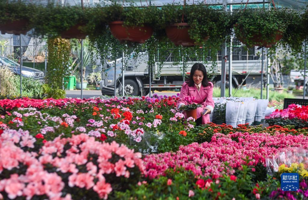 11月28日,在金華市金東區(qū)澧浦花木城的花藝苗圃內(nèi),游客在選購(gòu)花卉。