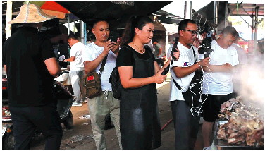 夜幕降臨時,忙了一天的大集即將結束狂歡,流量還將以短視頻的形式在各個平臺上醞釀。趕大集的攤主們盤算著一天收入,主播們思索著拍攝哪個攤位會有更多關注……