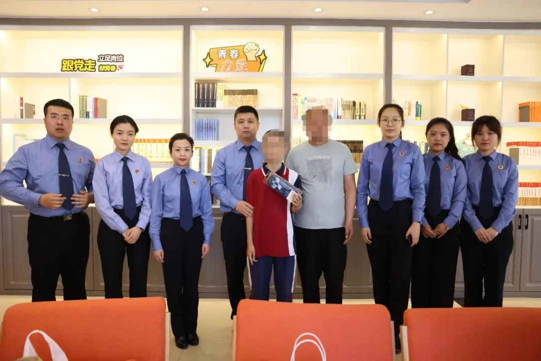 “六·一”兒童節(jié),遼寧省撫順市順城區(qū)人民檢察院救助過的小浩(化名)過得怎么樣,牽動著順城區(qū)人民檢察院干警的心。帶著對小朋友的惦念和關(guān)愛,今年5月29日,第五檢察部會同“清風(fēng)志愿者服務(wù)隊”的年輕檢察官們在順城區(qū)人民檢察院“清風(fēng)書苑”讀書室與四年級的小浩見面??粗『迫缃窕顫娊】档臉幼?,檢察官們由衷地感到欣慰,與他進(jìn)行了親切的交流,將學(xué)習(xí)文具、運動服、運動鞋等送到他手上,鼓勵他好好學(xué)習(xí)、天天向上,希望他多運動多鍛煉、增強(qiáng)體質(zhì)。隨后,檢察官們向小浩的爺爺詳細(xì)詢問其學(xué)習(xí)情況和生活現(xiàn)狀,了解司法救助金使用情況,并囑咐他有什么困難可以隨時反映。