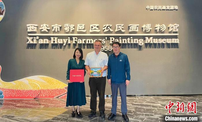 2023年8月,德國游客參觀西安市鄠邑區(qū)農(nóng)民畫博物館(受訪者供圖)