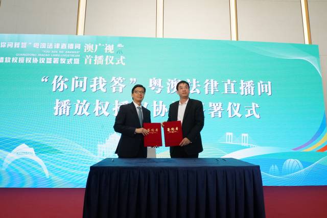 《“你問(wèn)我答”粵澳法律直播間》播放權(quán)授權(quán)協(xié)議簽署儀式