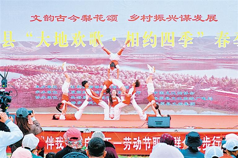 4月19日至21日,由文化和旅游部公共服務(wù)司主辦、自治區(qū)文化和旅游廳及中國文化館協(xié)會(huì)承辦、海原縣協(xié)辦的“大地歡歌·相約四季”春季村晚成果展示活動(dòng),在該縣關(guān)橋鄉(xiāng)方堡村梨花小鎮(zhèn)火熱舉辦。繁花綻放的數(shù)千畝百年梨園中,歌舞、魔術(shù)、戲曲、雜技等文藝表演輪番上陣、亮點(diǎn)紛呈;海原特色牛雜、燒烤、章魚小丸子、烤馕、手抓餅、肉夾饃、手工洋芋擦擦等鄉(xiāng)味濃郁的特色美食讓人回味無窮。剪紙、刺繡等非遺國潮集市人頭攢動(dòng),漢服游園者絡(luò)繹不絕,“璀璨梨園”篝火晚會(huì)更是讓游客流連忘返。