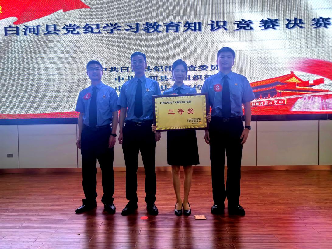 6月27日,陜西省安康市白河縣人民檢察院組織參加了縣紀(jì)委、縣委組織部、縣委宣傳部聯(lián)合舉辦的黨紀(jì)學(xué)習(xí)教育知識(shí)競(jìng)賽活動(dòng),通過(guò)激烈角逐,該院代表隊(duì)表現(xiàn)突出,榮獲競(jìng)賽三等獎(jiǎng)。