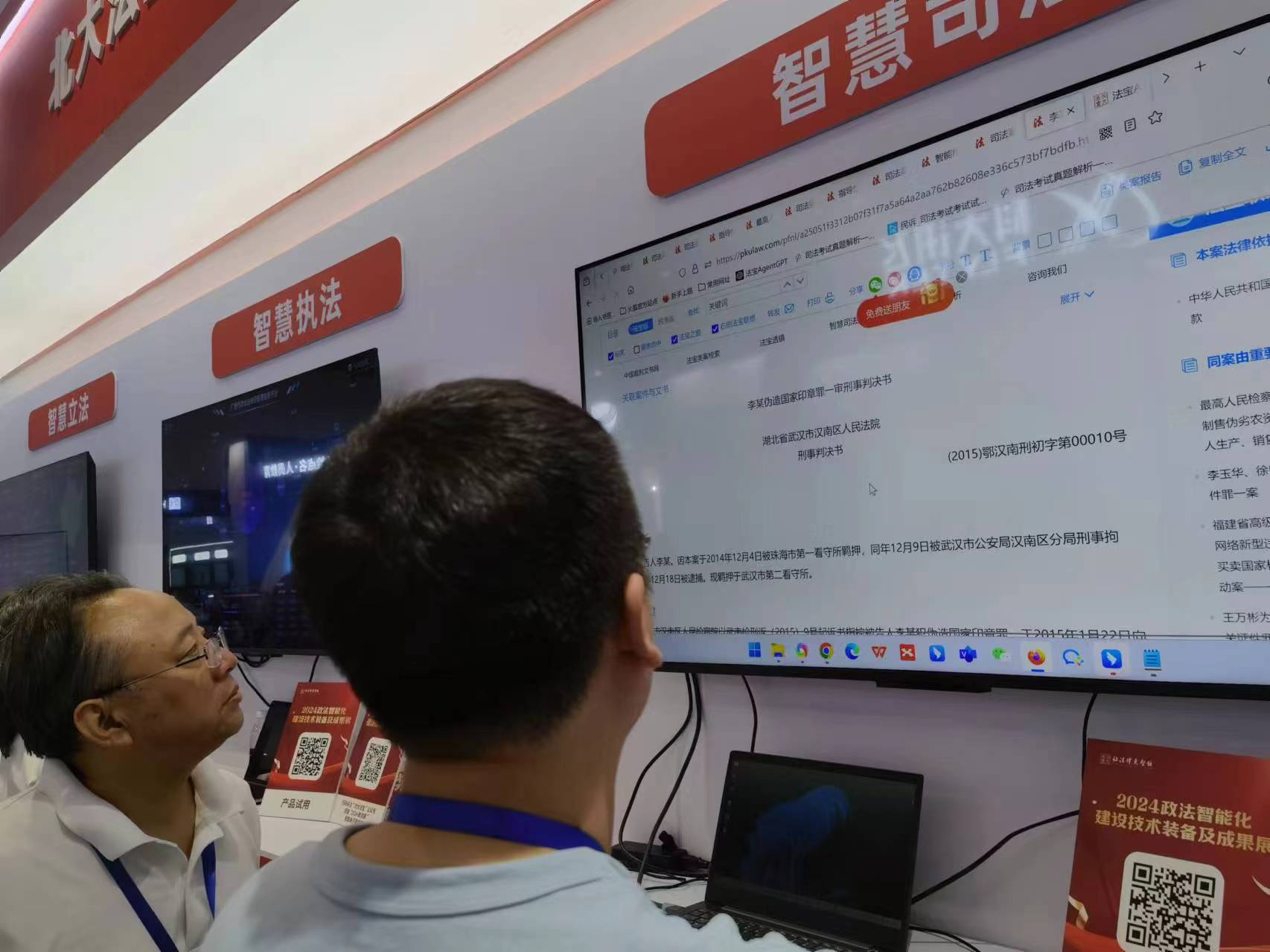 7月10日,記者在北京國家會議中心參觀由法制日報社主辦的“2024政法智能化建設(shè)技術(shù)裝備及成果展”(以下簡稱“政法裝備展”)時,看到了法律大模型給司法工作帶來高效便捷新賦能的各類演示場景。