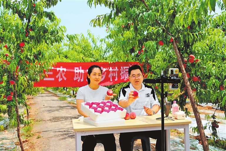 每年的6至7月份,新鄉(xiāng)郵政直播人員都會走進衛(wèi)輝的萬畝桃園,通過直播+郵寄的方式,依托三級物流體系幫助桃農把鮮桃郵寄全國各地。