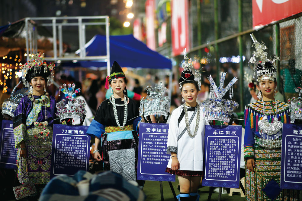 “村超”現(xiàn)場(chǎng),當(dāng)?shù)厣贁?shù)民族身著盛裝,向外來游客展示本民族服飾文化 張暉 攝