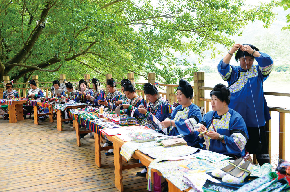 “回到榕江后,我?guī)Я?位徒弟,憑借這項(xiàng)手藝,她們有了可觀的收入?!笔瘣墼普f,有空的時(shí)候,自己還利用手機(jī)進(jìn)行教學(xué)直播,幫助更多鄉(xiāng)親掌握一技之長(zhǎng),助力他們自主創(chuàng)業(yè)就業(yè)。