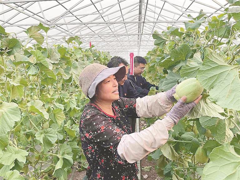 “頭一次看到不挨地、吊在架條上的甜瓜品種,輕輕一拍就自己脆裂,吃起來(lái)清爽香甜?!眮?lái)自哈爾濱市的何先生說(shuō)。