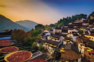 迎著陽光,篁嶺的“曬秋文化節(jié)”如期舉行,許多村民在屋檐和地面上晾曬糧食,各色的農(nóng)作物拼成了一幅幅美麗的畫卷。游客們慕名而來,他們穿行在山間的青石臺階上,既能欣賞小橋流水的古村風貌,也能一覽“曬秋大媽”的美術(shù)作品。