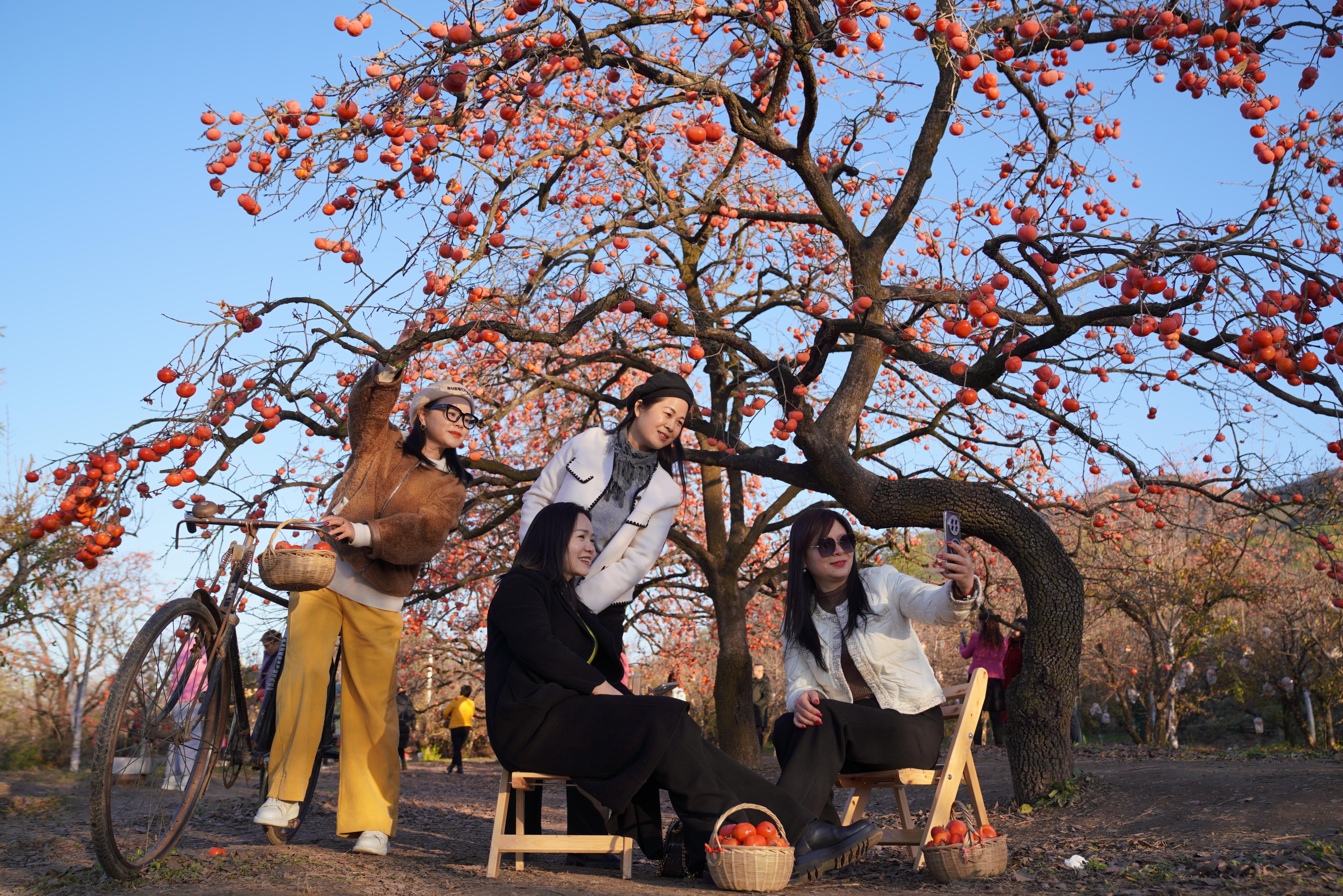 在山任村村民任撐柱的火晶柿子觀光園里,連片的柿子樹(shù)吸引不少游客前來(lái)“打卡”拍照?!安烧獣r(shí),我在樹(shù)上留一點(diǎn)柿子供攝影愛(ài)好者拍照,沒(méi)想到‘喜柿’拍照‘打卡’非常火爆,讓我看到了鄉(xiāng)村旅游的新前景。”任撐柱說(shuō),他的10余畝火晶柿子園目前全部向游客開(kāi)放,讓他和村民都感受到了鄉(xiāng)村旅游帶來(lái)的“甜蜜”。
