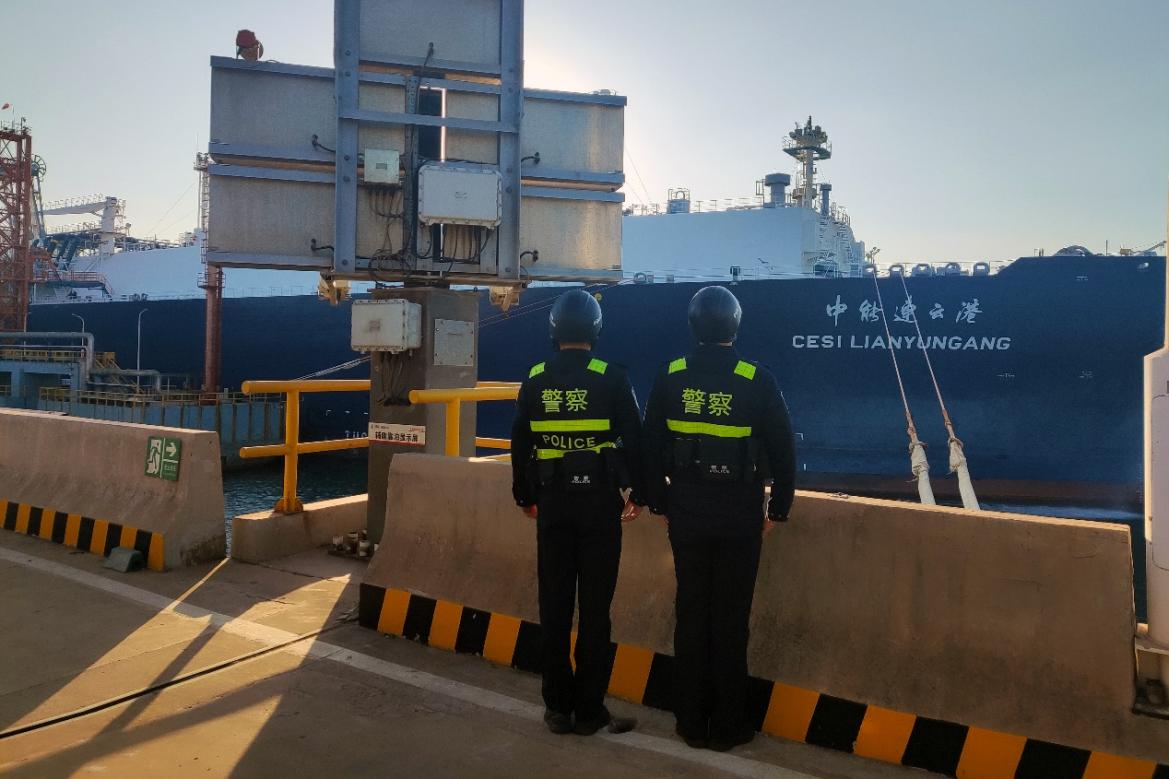 1月8日,從澳大利亞滿載而來(lái)的“中能連云港”號(hào)LNG運(yùn)輸船在山東出入境邊防檢查總站董家口邊檢站移民管理警察的監(jiān)護(hù)下平穩(wěn)抵達(dá)中國(guó)石化天然氣分公司青島LNG接收站,該輪帶來(lái)的17萬(wàn)立方米液化天然氣將為山東省及周邊地區(qū)今冬保供增添新底氣。