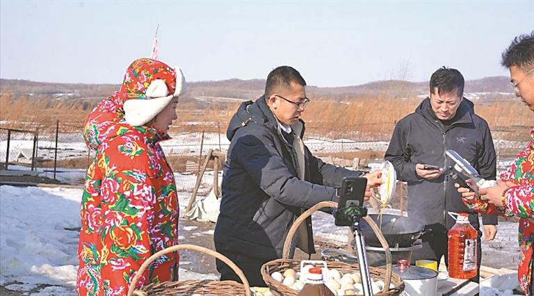“各位老鐵們,看看這雞蛋黃,招人稀罕不,這都是村民自家小笨雞下的……”3月12日,在黑龍江省饒河縣大通河鄉(xiāng)鎮(zhèn)江村村民劉偉軍家的小院里,一群新農(nóng)人正在手機屏幕前介紹著當?shù)靥厣r(nóng)產(chǎn)品,一旁的劉偉軍一邊看著銷售訂單的不斷刷屏,一邊高興得合不攏嘴。