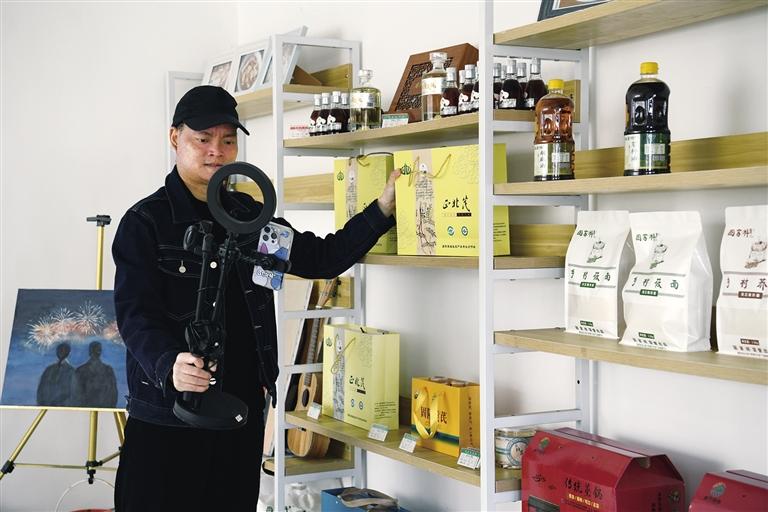 包頭市固陽縣金山鎮(zhèn)青年致富能手楊汶興線上銷售當(dāng)?shù)靥厣r(nóng)產(chǎn)品。彭海霞 攝