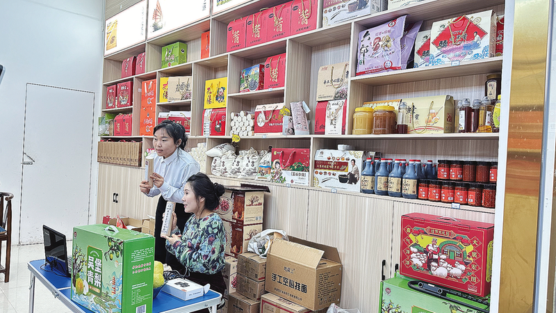 4月2日,農(nóng)家樂負(fù)責(zé)人鄭翠正在打包游客要的辣醬。