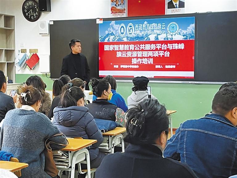 日喀則市薩嘎縣中學開展兩平臺應用培訓,助力教育數字化升級。受訪單位供圖